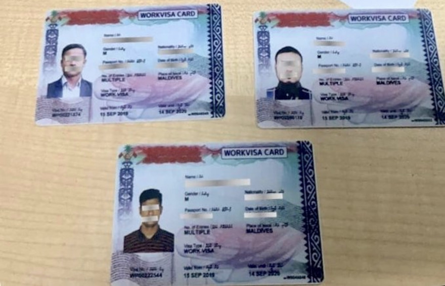 ސައްހަ ނޫން ވޯކް ވިސާ ކާޑުތަކެއް އެތެރެ ކުރަން އުޅުނު ބިދޭސީއަކު ހިފެހެއްޓިއިރު، ޝަހްސު އޮޅުވާލައިގެން އެކި ނަން ނަމުގައި ރާއްޖެ އެތެރެވާން އުޅުނު ބިދޭސީންތަކެއް ވެސް އިމިގްރޭޝަނުން ދާދިފަހުން ހިފެހެއްޓި އެވެ.