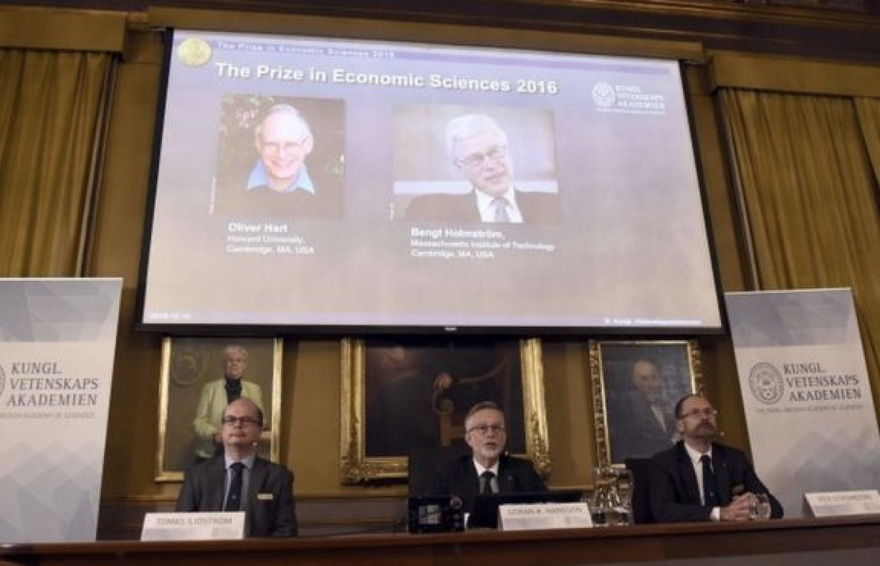 ހާވަޑް ޔުނިވާސިޓީގައި ކިޔަވައިދޭ އިނގިރޭސި ވިލާތުގެ އިކޮނޮމިސްޓް އޮލިވާ ހާޓް، 68، އާއި މެސަޗޫސެޓްސް އިންސްޓިޓިއުޓް އޮފް ޓެކްނޮލޮޖީ (އެމްއައިޓީ) ގައި ކިޔަވައިދޭ ފިންލެންޑުގެ ޕްރޮފެސަރު ބެން ހޮލްމްސްޓްރޮމް، 67، އަށް ނޯބެލް އިނާމު ދޭން ނިންމީ ކޮންޓްރެކްޓް ތިއަރީއާ ބެހޭ ގޮތުން އެ މީހުން ހޯދާފައިވާ ހޯދުންތަކަށެވެ.