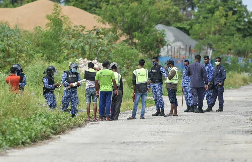މޯލްޑިވްސް އިމިގްރޭޝަންގެ އޮފިޝަލަކު މިއަދު ވިދާޅުވީ، މިދިޔަ މަހުގެ 13 ގައި ބޭއްވި މުޒާހަރާގައި، ރާއްޖޭގެ ގާނޫނާ ހިލާފު ވެގެން ހައްޔަރުކުރި 41 ބިދޭސީއަކު ފުލުހުން ހަވާލުކުރި ކަމަށެވެ. އޭގެ ތެރެއިން ބަންގްލަދޭޝްގެ 38 މީހަކު މިހާރު ވަނީ ފޮނުވާލައިފަ އެވެ. ބާކީ ތިބީ އިންޑިއާގެ ތިން މީހެކެވެ. ކޮވިޑް-19 އިން ރައްކާތެރިވުމަށް އެ ގައުމުގެ ބޯޑަރު ބަންދު ކޮށްފައިވާތީ، އެ މީހުން ފުރުވައިލެވެންދެން މިވަގުތު ބައިތިއްބާފައި ތިބީ ޑިޓެންޝަން ސެންޓަރުގަ އެވެ.