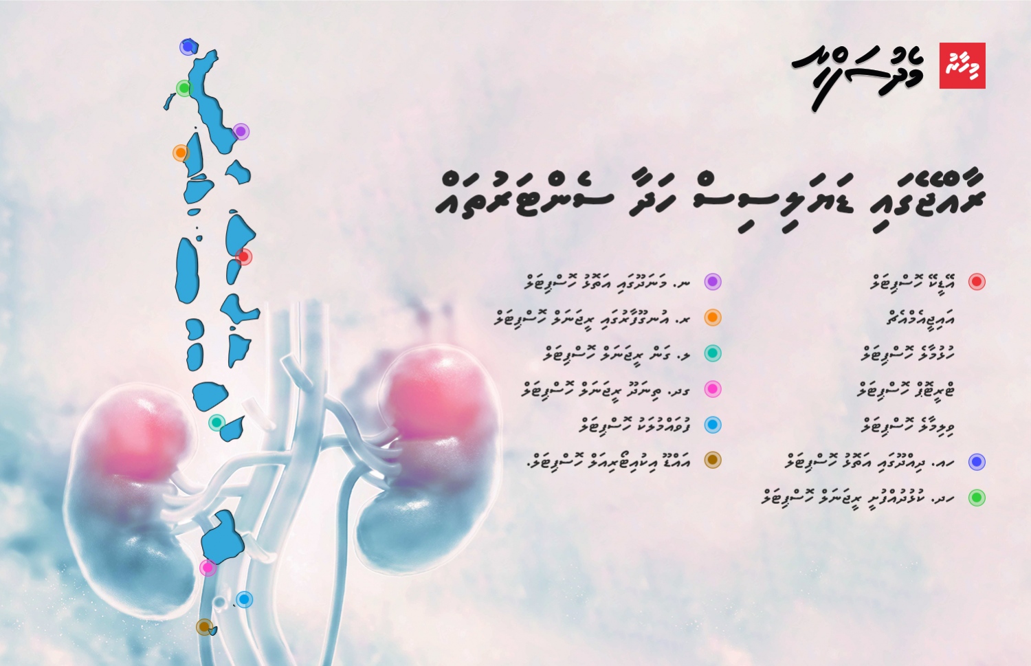 ކިޑްނީ ބަލިތަކަށް ފަރުވާ ދޭ ހަ ޑޮކްޓަރުން މި ވަގުތު ރާއްޖޭގައި ތިބި އިރު، މާލޭގެ ފަސް ހޮސްޕިޓަލުގެ އިތުރުން، އަތޮޅު ތެރޭގެ އަށް ހޮސްޕިޓަލަކުން ޑައިލަސިސްގެ ހިދުމަތް ދެ އެވެ. މިއީ ޓްރާންސްޕްލާންޓް ހެދެންދެން، ހަފްތާއަކު ދެތިން ފަހަރު، ކިޑްނީން އަދާ ކުރާ ދައުރު މެޝިނެއް ބޭނުންކޮށްގެން ކޮށްދޭ ފަރުވާ އެކެވެ.