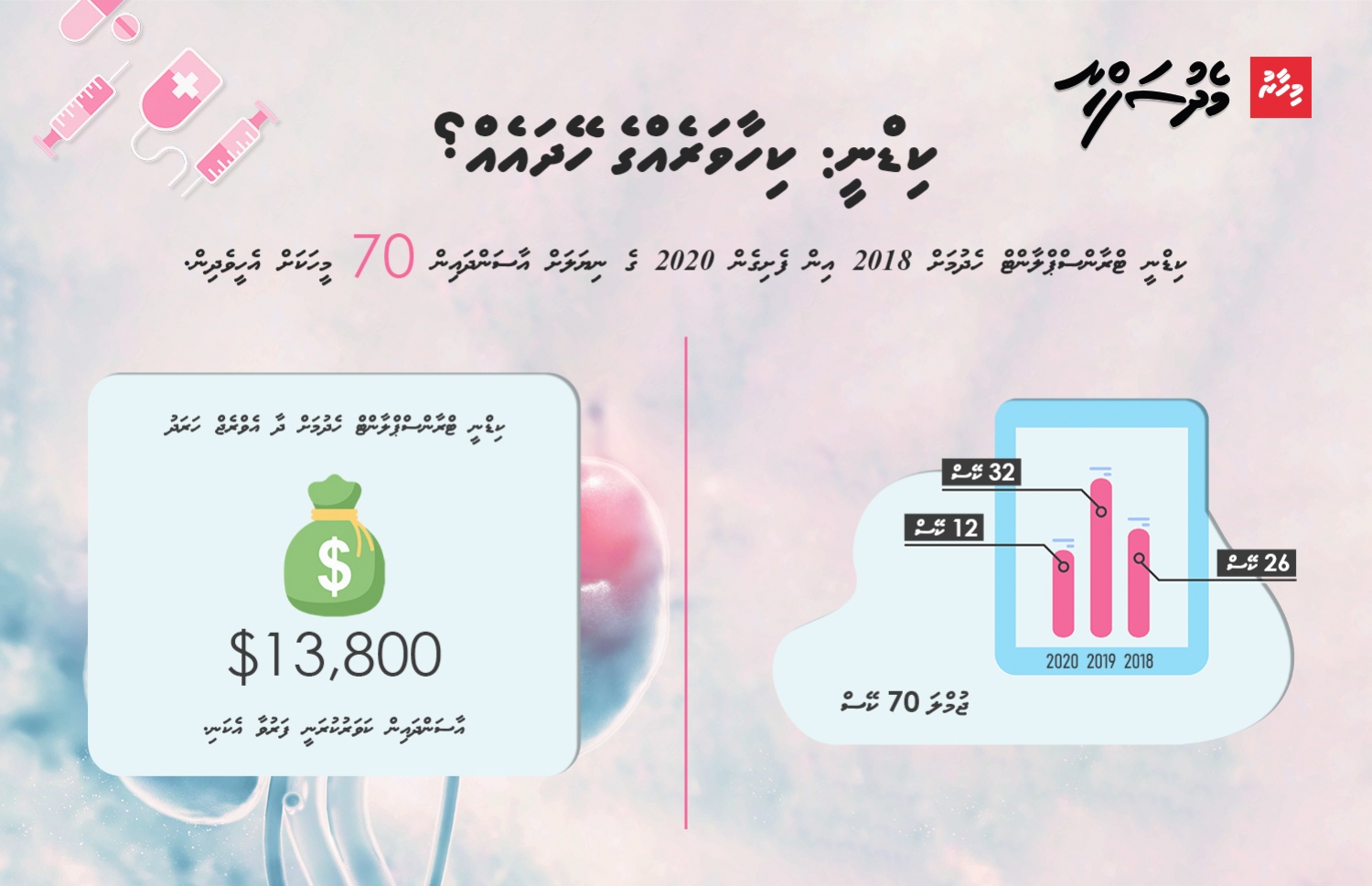 އާސަންދައިގެ ތަފާސްހިސާބުތަކުން ދައްކާ ގޮތުގައި ޓްރާންސްޕްލާންޓް ހެދުމަށް 2018 އަހަރުން ފެށިގެން މިދިޔަ އަހަރާ ހަމައަށް 70 މީހަކަށް އެހީދީފައިވެ އެވެ. އެއީ 2018 ވަނަ އަހަރު 26 ކޭސް، 2019 ވަނަ އަހަރު 32 އަދި މިދިޔަ އަހަރު 12 ކޭހެވެ. ޓްރާންސްޕްލާންޓަށް ހޭދަވާ އެވްރެޖް އަދަދު ކަމަށްވާ އޮޕަރޭޝަނަކަށް 13،800 ޑޮލަރުން (213،210ރ.) ބަލާ ނަމަ އެއީ އެކަމަށް އެކަނި ގާތްގަނޑަކަށް 15 މިލިއަން ރުފިޔާ އެވެ.