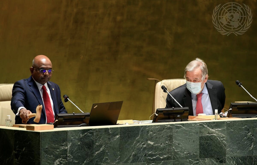 ދުނިޔޭގެ 191 ގައުމު ހިމެނޭ އދ. ގެ ރިޔާސަތާ ރާއްޖެއިން ހަވާލުވުމަށް ފަހު، ހަތް ބިލިއަން މީހުންނާ މުހާތަބު ކުރައްވައި، ފޮރިން މިނިސްޓަރު އަބްދުﷲ ޝާހިދު، ވަރަށް ފަހުރުވެރިކަމާ އެކު ދިވެހި ބަހުން ވިދާޅުވި އެވެ؛