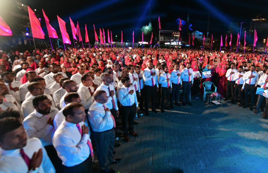 ބިޔަ ޖަލްސާއެއް ބޭއްވުމުގެ އުފާވެރިކަމާއި ފަޚުރުވެރިކަމުގައި ތިބި ޕީޕީއެމްގެ ގިނަ ސަޕޯޓަރުން ބުނެފައި ވަނީ ރޭގެ ޖަލްސާ އަށް ހާޒިރުވެ ތިބީ ބިރުދައްކާފައި ތިބި ބައެއް ނޫން ކަމަށެވެ.