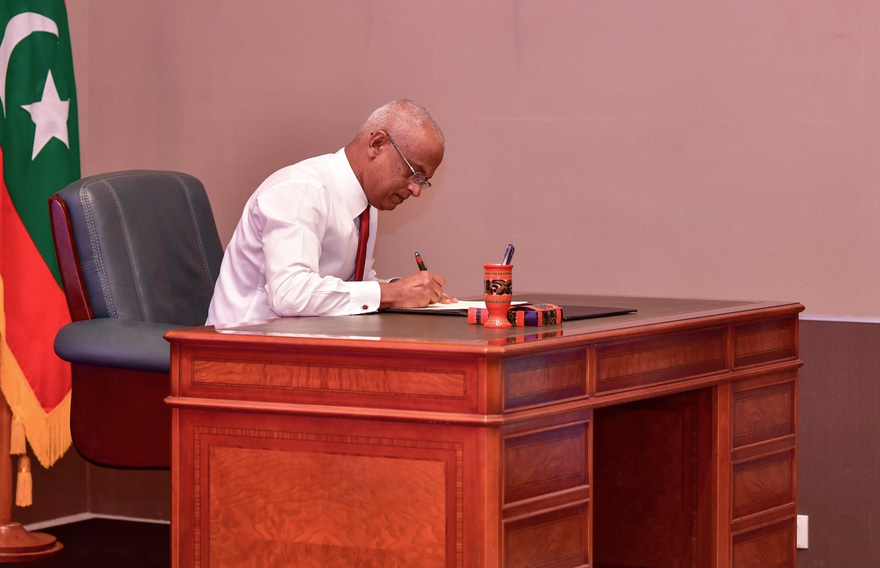 "މީގެ 16 ދުވަސް ކުރިން، އަޅުގަނޑު ތަޞްދީޤުކުރި، ލާމަރުކަޒީ ޤާނޫނު އިޞްލާޙު ކުރުމުގެ ބިލް މިހާރު އެ ވަނީ ޤާނޫނަކަށް ވެފަ އެވެ. އެ ޤާނޫނަށް ޢަމަލުކުރަން ފެށުމުން، ފުރިހަމަ މާނައިގައި ރާއްޖެ ލާމަރުކަޒީ ވެގެން ދާނެ އެވެ. ޖަޒީރާ ވަންތަ ރާއްޖެއެއްގެ ގޮތުގައި، ރާއްޖެ ތަރައްޤީ ކޮށްދިނުމަށް ރައްޔިތުން އެދުނު އެދުމާ އެއްގޮތަށް، އެކަން ކުރުމުގެ ފުރިހަމަ އިޚްތިޔާރާއި ބާރު، ރައްޔިތުންގެ އަތްމައްޗަށް ދީ، މާލީ ގޮތުންނާއި އިދާރީ ގޮތުން، ކައުންސިލްތަކަށް މިހާރު އެ ވަނީ ފުރިހަމަ މިނިވަންކަން ދެވިފަ އެވެ،" ރައީސް ވިދާޅުވި އެވެ.
