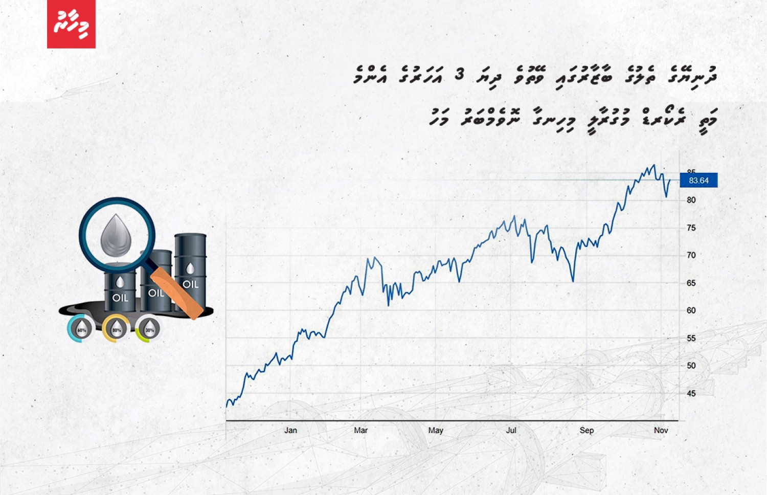 އައިއެމްއެފް އާ ހަވާލާދީ ބަޖެޓު ކަރުދާސްތަކުގައި ތެލާއި ހަކަތަ، ކާބޯތަކެތި އަދި ކޮމޯޑިޓީސް އަގުތައް ތިރިވާނެ ކަމަށް ލަފާ ކޮށްފައިވީ ނަމަވެސް، ދުނިޔޭގެ ތެލުގެ ބާޒާރުގައި ވޭތުވެ ދިޔަ ތިން އަހަރުގެ އެންމެ މަތީ ރެކޯޑް މުގުރާލީ މި ހިނގާ ނޮވެމްބަރު މަހުއެވެ. ކުރިޔަށް އޮތީ ތަރައްގީ ވެފައިވާ ދުނިޔެއިން އެންމެ ގިނައިން ތެޔޮ ބޭނުންކުރަން ޖެހޭ ފިނި މޫސުން ކަމުގައި ވެފައި، މި ދުވަސްކޮޅަކީ ކޮވިޑަށް ފަހު ގައުމުތަކުގެ އިގްތިސާދީ އިންޖީނުތައް ހިންގަން މަސައްކަތް ފަށައިފައިވާ ދުވަސްވަރު ކަމުންނާއި ޖިއޯ ޕޮލިޓިކަލް ކުޅިވަރުތަކުގެ ސަބަބުން، ތެލުގެ އަގު 2022 ގެ މެދުތެރެއާ ހަމައަށް ވެސް އުޅޭނީ މަތީގައި ކަމުގައި ގަބޫލުކުރެވެއެވެ.