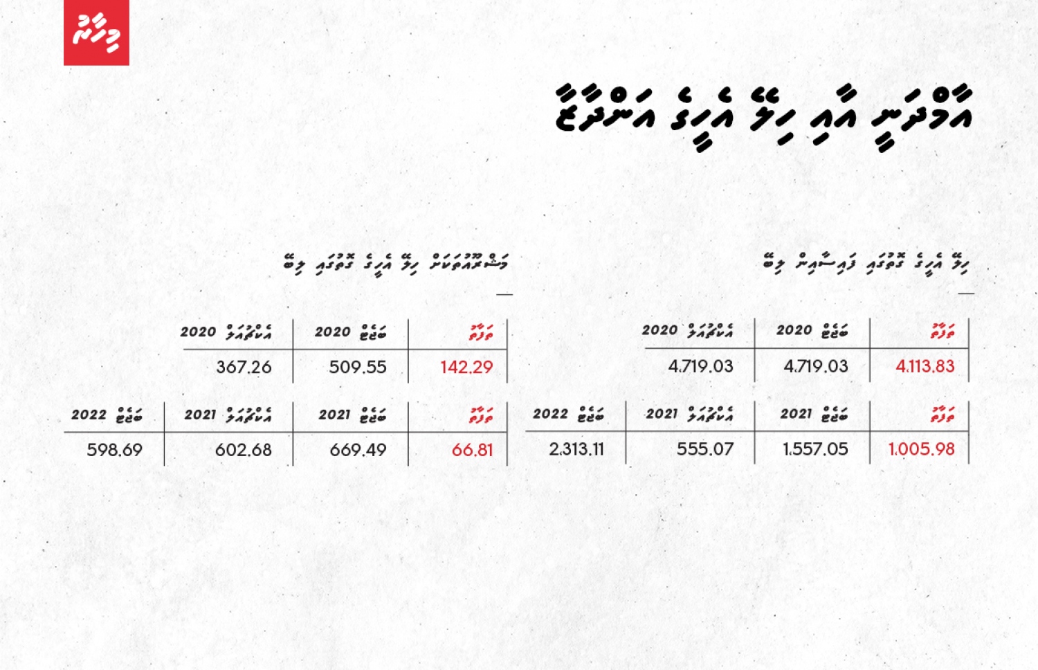 އެހެންކަމުން 2022 ގެ ބަޖެޓުގައި ހިލޭ އެހީގެ ގޮތުގައި ލިބޭނެ ކަމަށް އަންދާޒާ ކުރާ އަދަދު ނުލިބި، ޓޫރިޒަމަށް ވެށި ވިއްކުމަށް ކުރާ މަސައްކަތުގެ ނަތީޖާ ސަރުކާރަށް ފަހިކޮށް ނުލިބި، ނަތީޖާއެއްގެ ގޮތުން އިތުރަށް ބަޖެޓު ޑެފިސިޓްވެ، މާލީ ދަތިކަމުގެ ތެރެއަށް ގައުމުވަނުމަކީ އެކަށީގެންވާ ކަމެކެވެ.