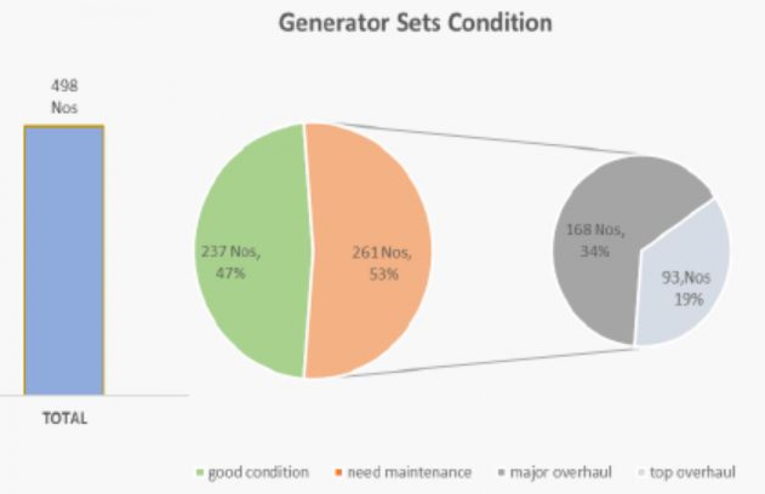 ފާއިތުވި ފަސް އަހަރުގެ ތެރޭގައި 299 ޖަނަރޭޓަރު ގަނެ، ޖުމްލަ އަދަދު 498 އަށް އަރާފައި ވިޔަސް، ގަވާއިދުން މެއިންޓެނަންސް ނުހިންގާތީ އޭގެ ތެރެއިން 261 ޖަނަރޭޓަރު ހުރީ ވަރަށް ދެރަވަރު ހާލަތުގަ އެވެ. އަދި 168 ޖަނަރޭޓަރު ހުރީ މުޅިން އޯވަހޯލް ކުރަންޖެހިފަ އެވެ.