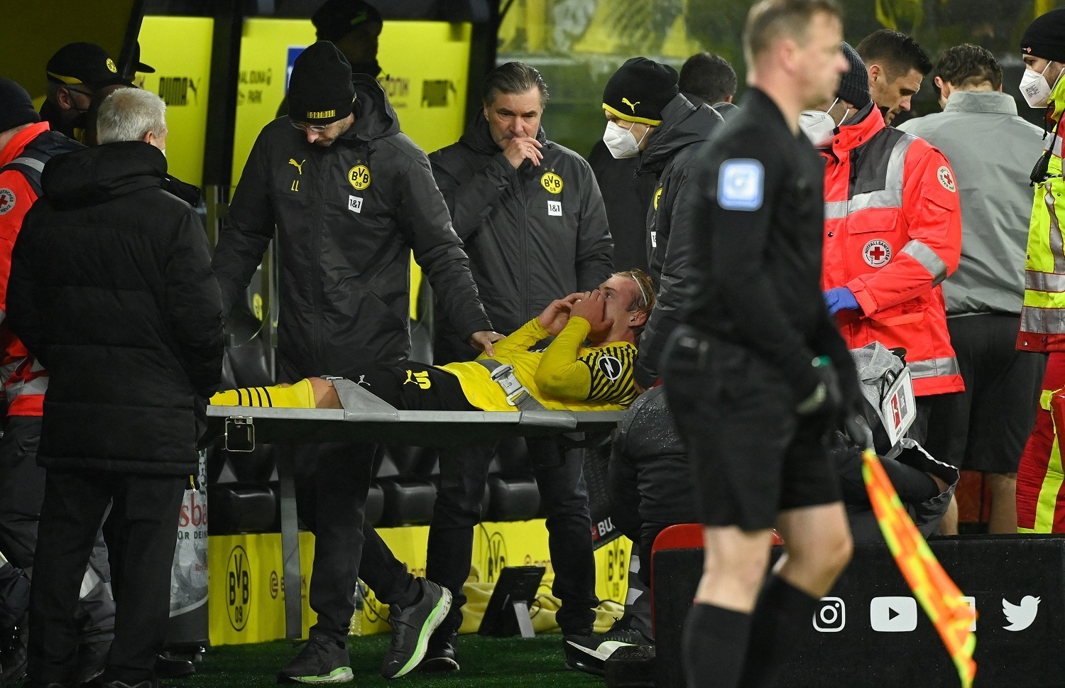 މި ޕެނަލްޓީއާ ގުޅިގެން ހިތްހަމަނުޖެހުން ފާޅުކުރި ޑޯޓްމަންޑުގެ ކޯޗު މާކޯ ރޯސް އަށް ވަނީ ދެވަނަ ރީނދޫ ކާޑަކާ އެކު ރަތް ކާޑެއް ދައްކައި، ބެންޗުން ފޮނުވާލައިފަ އެވެ. އޭގެ ކުރިން، ދެވަނަ ހާފުގައި ރޯސް އަށް ވަނީ އިތުރު ރީނދޫ ކާޑެއް ދައްކައިފަ އެވެ.