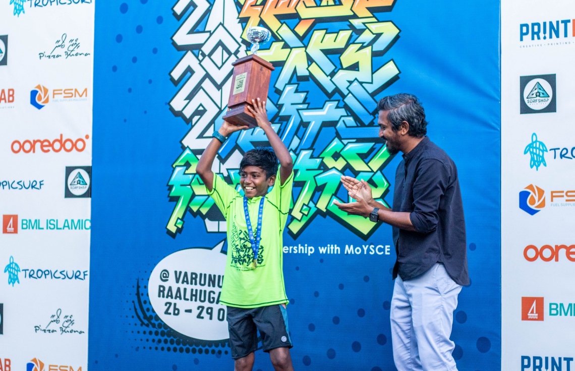 މިދިޔަ އަހަރުގެ ގައުމީ ޖޫނިއާ ޗެމްޕިއަންޝިޕްގައި 16 އަހަރުން ދަށުގެ ޗެމްޕިއަން ޓްރޮފީ ޔަސީން އުފުލާލަނީ. -- ފޮޓޯ: އެމްއެސްއޭ