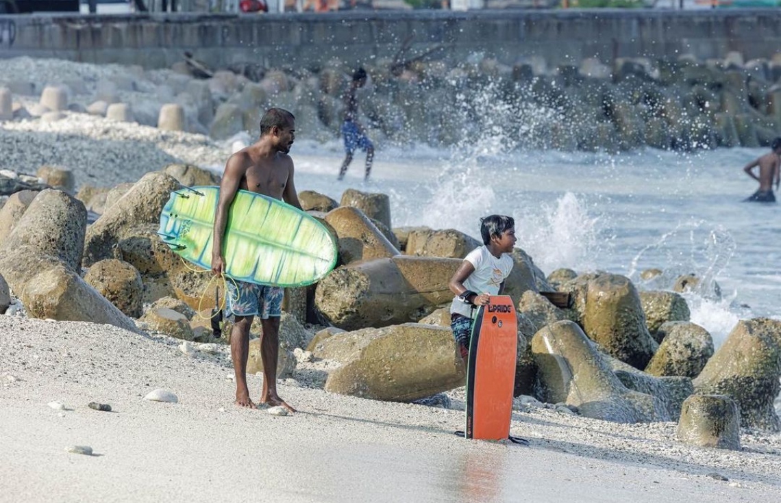 ބޫގީބޯޑުގައި ސާފިން ދަސްކުރި އިރު ޔަސީން ހޯސީ ކޯޗާ އެކު.-- ފޮޓޯ: ޔަސީން އިންސްޓަގްރާމް