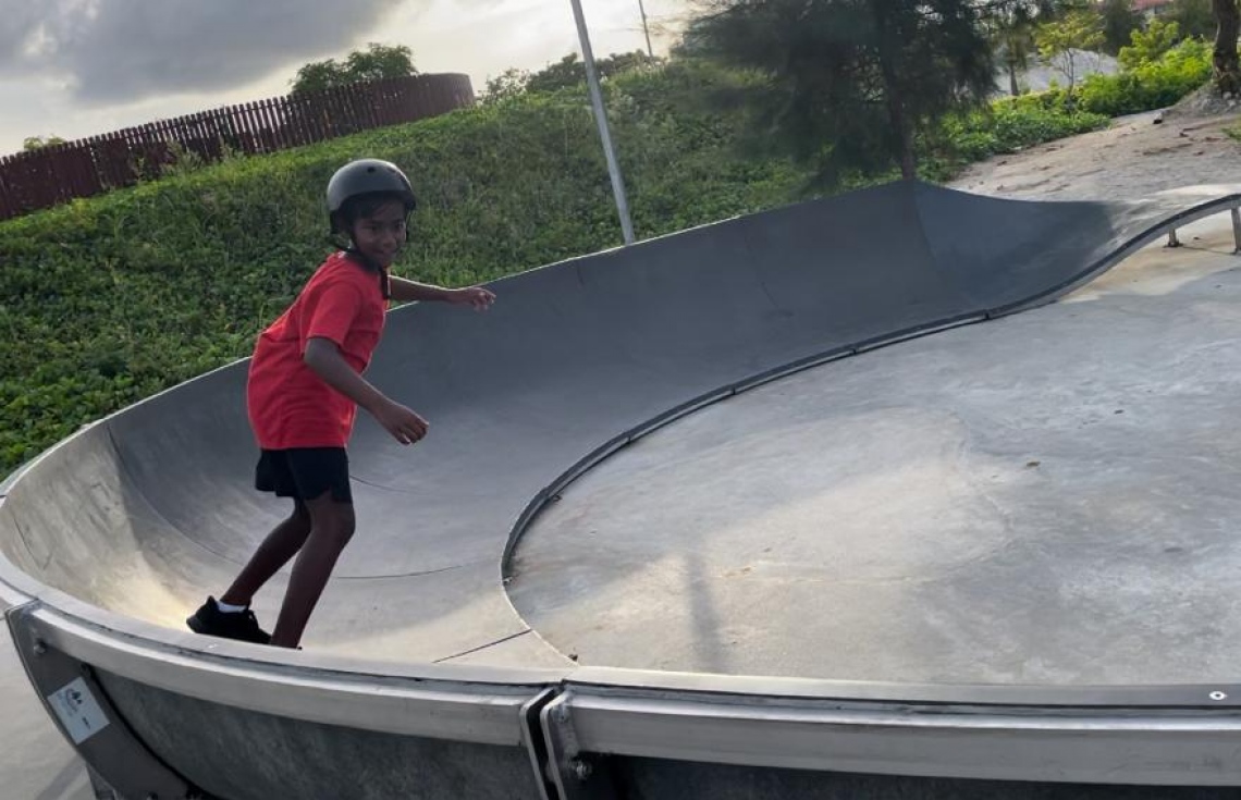 ހުޅުމާލެ ސްކޭޓް ޕާކުގައި ޔަސީން ސްކޭޓް ކުރަނީ.