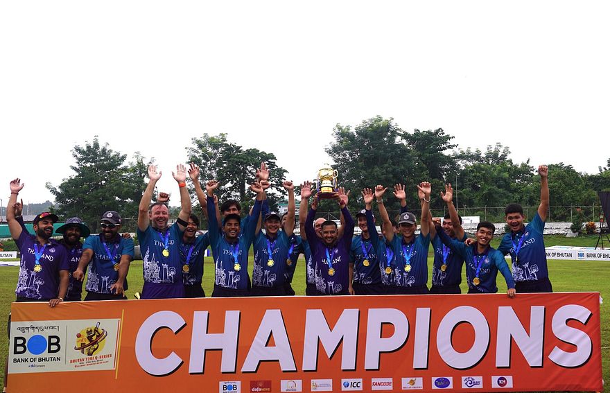 ބޫޓާން އިންޓަނޭޝަނަލް ކްރިކެޓް މުބާރާތުގެ ފައިނަލުގައި ރާއްޖެ އާއި ތައިލެންޑް ކުޅެން ހަމަޖައްސާފައި އޮތް މެޗު ނުކުޅެވުމުން ލީގުބުރުގެ އެންމެ ކުރީގައި އޮތް ތައިލެންޑަށް ތަށި ދީފި އެވެ.