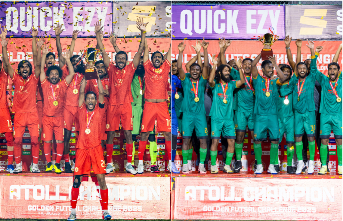 ގޯލްޑަން ފުޓްސަލް ޗެލެންޖް 2025 ގައި އދ. މަންދޫ އާއި ގއ. ދެއްވަދޫ ވެސް ފުރަތަމަ ފަހަރަށް އަތޮޅުގެ ޗެމްޕިއަންކަން ހޯދައިފި އެވެ.