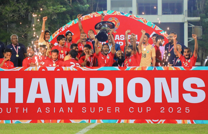 ސްރީ ލަންކާ ފުޓްބޯޅަ ފެޑެރޭޝަނުން އިންތިޒާމުކޮށްގެން އެ ގައުމުގައި ބޭއްވި ސައުތު އޭޝިއަން ސުޕަ ކަޕް ކާމިޔާބުކުރި ރާއްޖޭގެ ގައުމީ ފުޓްބޯޅަ ޓީމަށް މަރުހަބާ ކިޔަން މިއަދު ހަވީރު ގަލޮޅު ދަނޑުގައި ރަސްމިއްޔާތެއް ބާއްވަން ސްޕޯޓްސް މިނިސްޓްރީން ނިންމައިފި އެވެ.