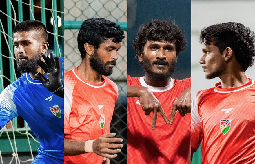 މިއަހަރުގެ ކޮލިފައިންގައި ވާދަކުރާ ރާއްޖޭގެ ފުޓްސަލް ޓީމުން މުޅިން އަލަށް ޖާގަ ހޯދި ހަތަރު ކުޅުންތެރިންނަކީ އަލީ ޝަމާލް އަބްދުﷲ (ޝަންމު) އާއި މުހައްމަދު ފާސިރު (ފާއްޓޭ) އަދި އަހުމަދު ރާހިލް ރަޝީދުގެ އިތުރުން ގޯލްކީޕަރު އަބްދުﷲ ޒިމާމް އެވެ.
