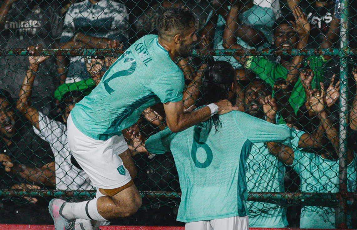 އެޗްޑީސީގެ ފުރަތަމަ ގޯލަށް ފަހު ރިކާޑީނިއޯ (ވ) އާއި ކުޅުންތެރިން އުފާފާޅުކުރަނީ.-- ފޮޓޯ: ކްލަބް އެޗްޑީސީ
