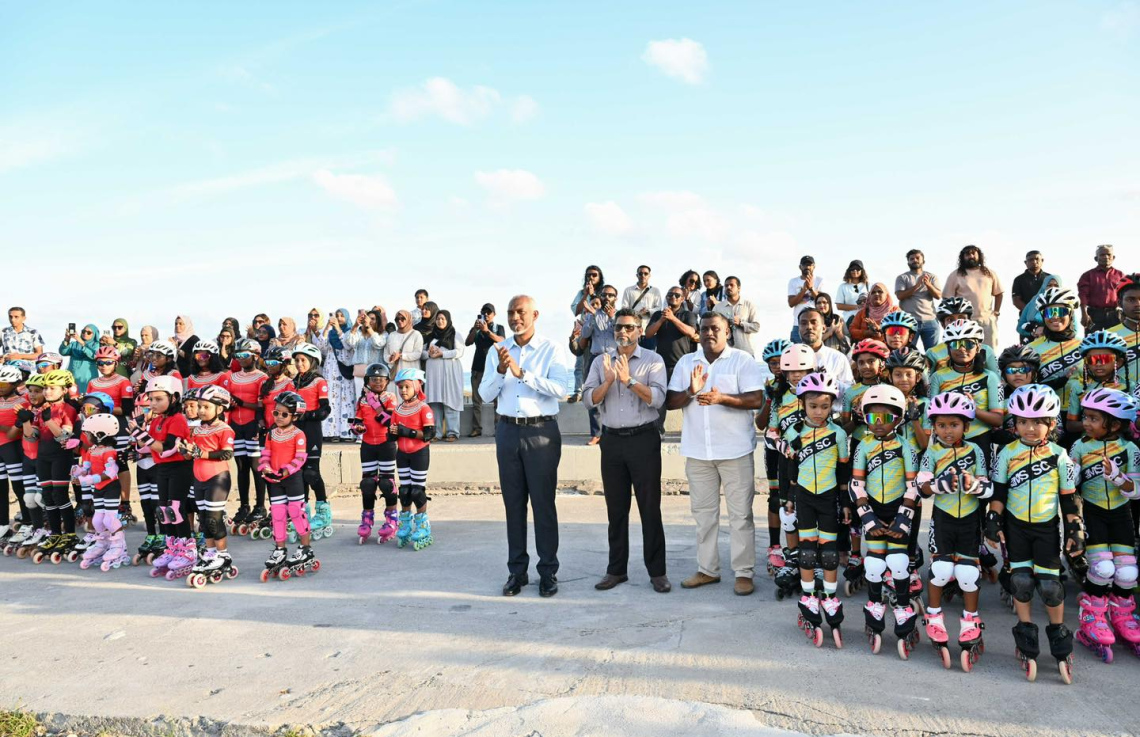އިއްޔެ ހަވީރު އުސްފަސްގަނޑުގައި ބޭއްވި ސްކޭޓް އެރީނާގެ ބިންގާ އެޅުމުގެ ރަސްމިއްޔާތުގައި ރައީސް ޑރ. މުހައްމަދު މުއިއްޒު ވެސް ބައިވެރިވެވަޑައިގަތެވެ.