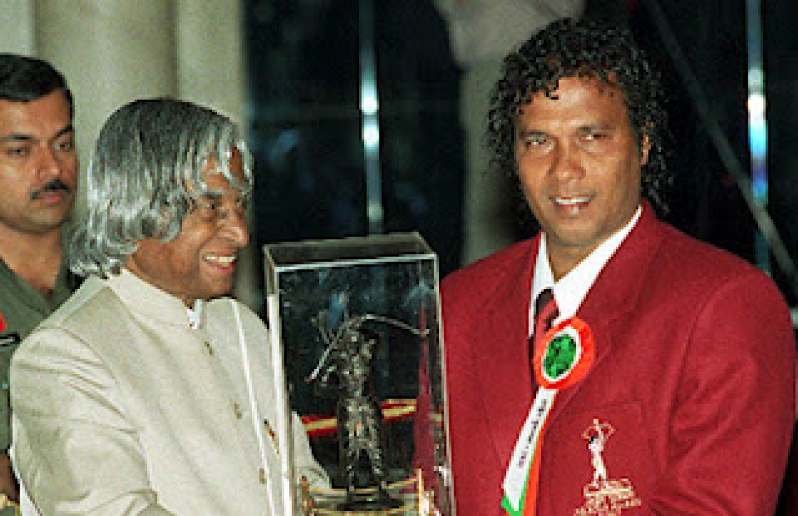 ބްރޫނޯ (ކ) އަށް އިންޑިއާގެ އޭރުގެ ރައީސް ކަލާމް، އަރްޖުނާ އެވޯޑް ދެއްވަނީ.