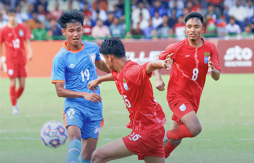 ސާފް 20 އަހަރުން ދަށުގެ ޗެމްޕިއަންޝިޕުގައި މިއަދު ބަންގްލަދޭޝްގެ ހެޑް ކޯޗު އަޔަލެންޑްގެ މާކް އެޑްވާޑް ކޮކްސް އަށް ރަތް ކާޑު ދައްކައި ބެންޗުން ފޮނުވާލި މެޗުގައި އެ ގައުމުން އިންޑިއާއާ 1-1 އިން އެއްވަރު ކޮށްފި އެވެ.