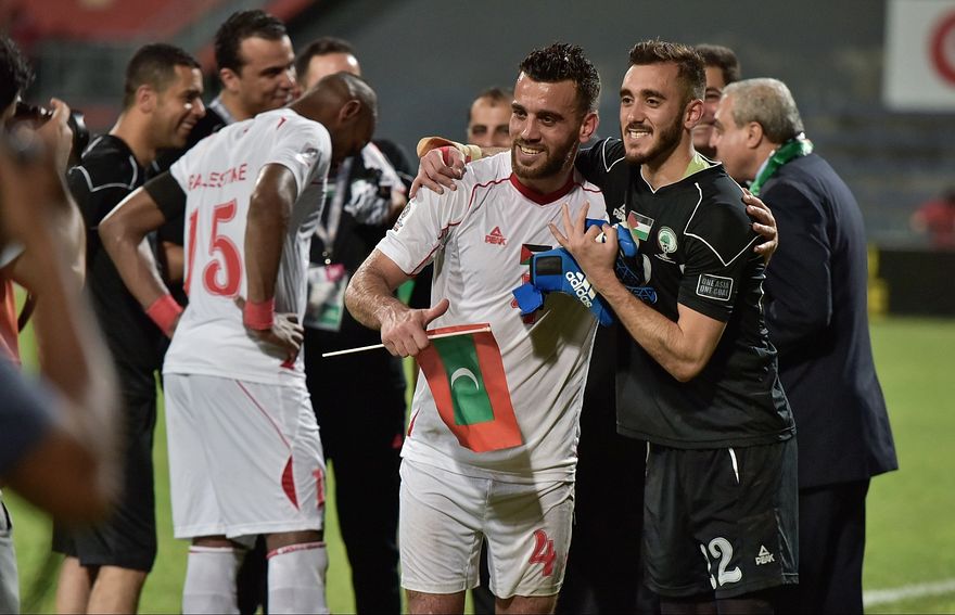 ފަލަސްތީނުން 2015 ވަނަ އަހަރު އޮސްޓްރޭލިއާގައި އޮތް އޭޝިއަން ކަޕަށް ކޮލިފައިވީ 2014 ވަނަ އަހަރު ރާއްޖޭގައި އޮތް އޭއެފްސީ ޗެލެންޖް ކަޕްގެ ޗެމްޕިއަންކަން ހޯދައިގެންނެވެ. އަދި 2019 ވަނަ އަހަރު ޔޫއޭއީގައި އޮންނަ އޭޝިއަން ކަޕަށް ކޮލިފައިވުމަށް ފަލަސްތީނުން ދަތުރުފެށީ މިދިޔަ މާޗް މަހު މާލޭގައި ކުޅުނު މެޗުން 3-0 އިން ރާއްޖެ ބަލިކޮށްފަ އެވެ.