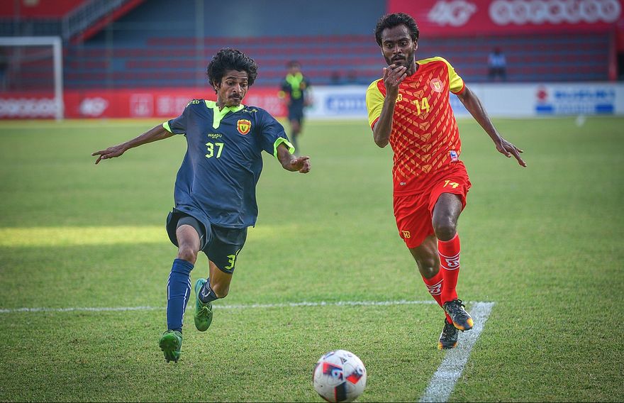 މެޗުގެ 18 ވަނަ މިނިޓްގައި ޔުނައިޓެޑް ވިކްޓަރީގެ ޓްރިންޑާޑް އެންޑް ޓޮބޭގޯ ފޯވާޑް ކޯޑެލް ސެމިއުލް ނަގައިދިން ހުރަހަކުން އޭރިއާ ތެރެއިން އެ ޓީމުގެ އަލީ ހައިޝަމް (ޗުމްޕު) ބޮލުން ފޮނުވާލި ބޯޅަ ބޭރުވީ ވިކްޓަރީގެ ކީޕަރު މުހައްމަދު އިމްރާން އަތްމަތިން ގޮސް ހުރަސް ދަނޑީގައި ޖެހިފަ އެވެ.