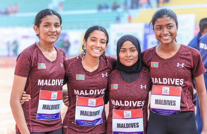 މި ފަހަރުގެ ގޭމްސްގައި ވާދަކުރި އަންހެން ރިލޭ ޓީމުގައި ހިމެނެނީ މަރިޔަމް އަލްހާ، އައިޝަތު ހިމްނާ ހަސަން، ރިފާ މުހައްމަދު އަދި ސާރާ މައްސޫދު އެވެ. ހަ ގައުމަކުން ވާދަކުރި ރިލޭ އިވެންޓުގެ އެންމެ ފަހަތުން ރާއްޖޭން ނިންމި ނަމަވެސް އަންހެން ޓީމުން ގައުމީ ރެކޯޑް އާ ކުރީ 50:16 ސިކުންތުން ނިންމައިގެންނެވެ. މި އިވެންޓުން ރަން މެޑަލް ހޯދީ 44:89 ސިކުންތުން ނިންމި ލަންކާގެ ޓީމެވެ.