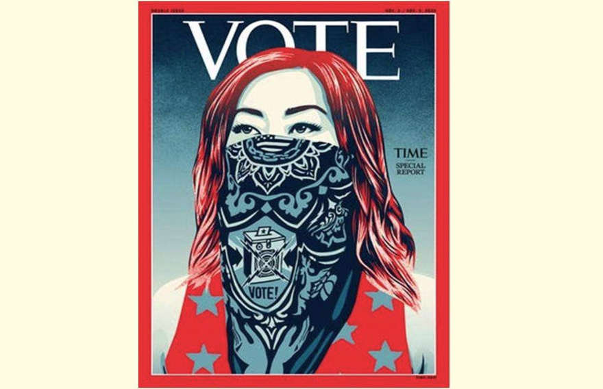 އެމެރިކާގެ ތާރީހުގައި ވެސް ފާހަގަކޮށްލެވޭ އިންތިހާބެއްގެ ގޮތުގައި އަންނަ މަހު ބާއްވާ އިންތިހާބު ފާހަގަކުރެވޭ އިރު އެކަމާ ގުޅުވައިގެން ނެރޭ "ޓައިމް" ގެ ކަވަރުގައި ޖަހާފައި އިނީ "ވޯޓް" ލިޔެފައި އިން ސްކާފެއް އަނގަމަތީގައި އަޅައިގެން އިންނަ އަންހެނެއްގެ ކުރެހުމެކެވެ. އަދި ކަވަރުގެ މައި ސުރުޚީ އަކީ "ޓައިމް ސްޕެޝަލް ރިޕޯޓް" އެވެ.