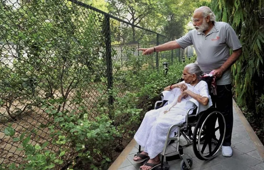 މޯދީގެ މަންމާފުޅު އުމުރުން 95 އަހަރުގެ ހީރަބެން މޯދީ، ރޭސް ކޯސް ރޯޑް (އާރުސީއާރު) އަށް ކުރެއްވި ޒިޔާރަތުގެ ބައެއް ފޮޓޯތައް މޯދީ ވަނީ ޓްވީޓްކުރައްވައިފަ އެވެ. މޯދީގެ މަންމާފުޅު ދިރިއުޅުއްވަނީ ގުޖުރާތުގައި އެކަމަނާގެ އާއިލީ ގެކޮޅުގަ އެވެ. މިއީ މޯދީގެ ރަސްމީ ގެކޮޅަށް ހީރަބެން ކުރެއްވި ފުރަތަމަ ޒިޔާރަތެވެ.
