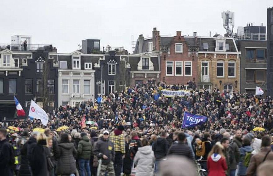 ކޮވިޑް-19 އިން ރައްކާތެރިވުމުގެ ގޮތުން އަޅާފައިވާ ފިޔަވަޅުތަކާ ދެކޮޅު ހެދުމުގެ ގޮތުން، ނެދަލޭންޑްސްގެ ވެރިރަށް އެމްސްޓެޑަމްގައި އިއްޔެ އެތައް ހާސް ބަޔަކު މަގުތަކަށް ނުކުމެ މުޒާހަރާކޮށްފި އެވެ.