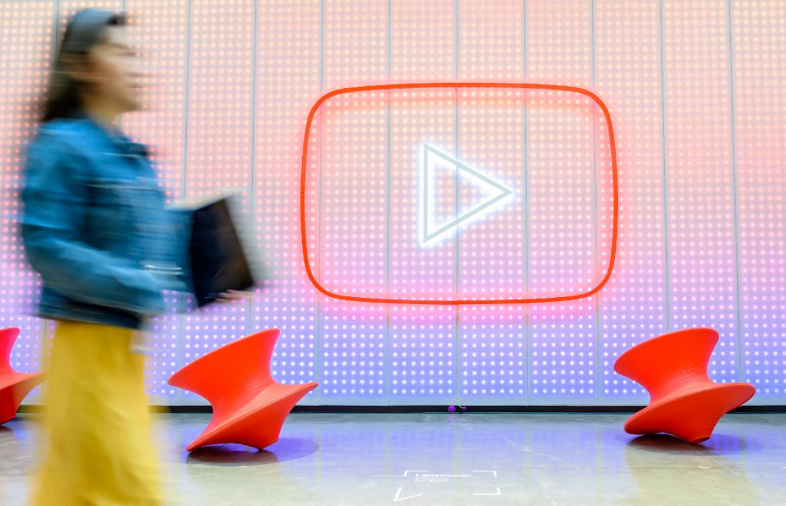 ކެލިފޯނިއާގެ ސެން ބްރޫނޯގައި ހުންނަ ގޫގުލްގެ ކޯޕަރޭޓް ހެޑްކްއާޓަރުގައި ބަހައްޓާފައި ހުރި ޔޫޓިއުބް ލޯގޯއެއްގެ ކައިރިން މީހަކު ހިނގާފައި ދަނީ: ޔޫޓިއުބުން ވަނީ ޓްރަމްޕަށް ބަދަލުގައި 22 މިލިއަން ޑޮލަރު ދޭން އެއްބަސްވެފައި. -- ފޮޓޯ: އޭއެފްޕީ