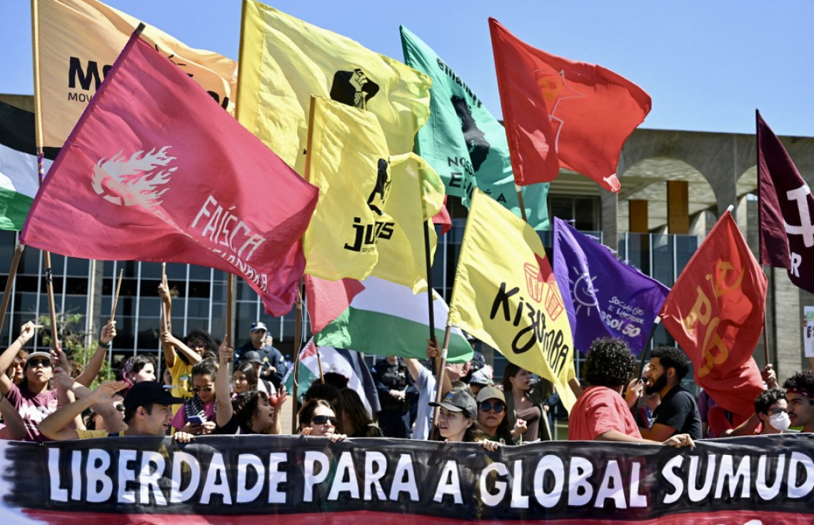 ޣައްޒާ ފްލޮޓީލާ ހުއްޓުވި މައްސަލައިގައި ބްރެޒިލްގައި ބަޔަކު މުޒާހަރާކުރަނީ: އެކި ގައުމުތަކުގައި ދަނީ މި މައްސަލައިގައި އިޒްރޭލާ ދެކޮޅަށް އަޑު އުފުލަމުން. -- ފޮޓޯ: އޭއެފްޕީ