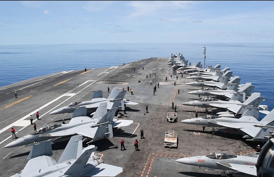 ނޭވީގެ ބަޔާނުގައި ބުނީ އޭގެ 30 މިނިޓް ފަހުން ބޮއިންގް އެފް/އޭ-18އެފް ސުޕަ ހޯނެޓް ފައިޓާ ޖެޓެއް ޔޫއެސްއެސް ނިމިޓްޒްގެ ރޫޓިން އޮޕަރޭޝަންތަކެއްގައި ސައުތު ޗައިނާ ކަނޑަށް ވެއްޓުނު ކަމަށެވެ.