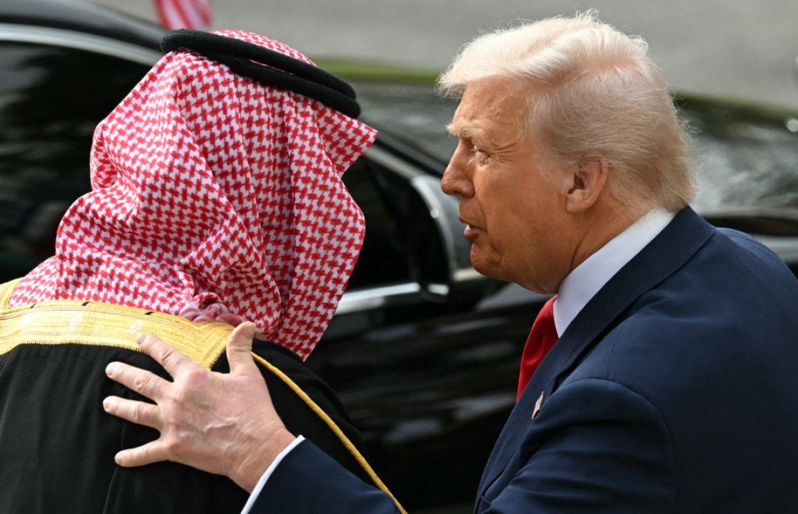 އެމެރިކާގެ ރައީސް ޑޮނަލްޑް ޓްރަމްޕު (ކ) އާއި ސައޫދީ ވަލީއަހުދު މުހައްމަދު ބިން ސަލްމާން މިއަދު ވައިޓް ހައުސްގައި ބައްދަލުކުރައްވަނީ. -- ފޮޓޯ: އޭއެފްޕީ