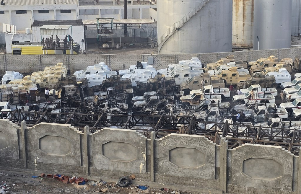 ޔަމަނުގެ ހަނގުރާމަވެރި ޖަމާއަތް، އެސްޓީސީއަށް ދޭން ޔޫއޭއީން ގެނެސްފައިވާ ކަމަށް ތުހުމަތުކުރާ އަސްކަރީ އުޅަނދުތަކަށް ސައުދީ ކޯލިޝަނުން ދިން ހަމަލާގައި ގެއްލުންތައް ލިބިފައި. --ފޮޓޯ: އޭއެފްޕީ