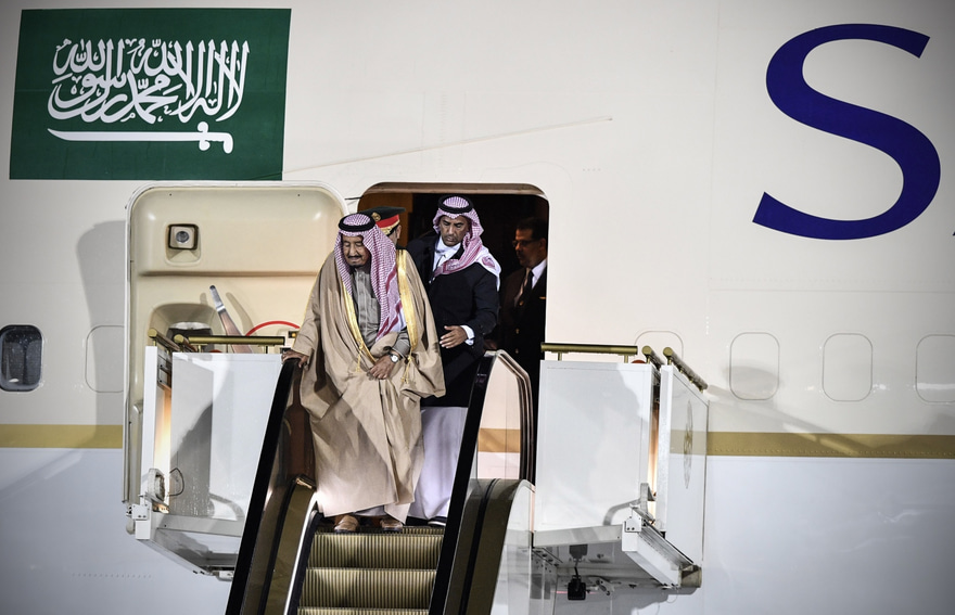 މޮސްކޯގެ ވުނުކޯފް-2 އެއާޕޯޓުގައި 81 އަހަރުގެ ރަސްގެފާން ދަތުރުކުރެއްވި ސައުދީ އެއާލައިންސްގެ ޚާއްސަ މަތިންދާ ބޯޓު ޖެއްސުމާ އެކު ކަރަންޓް ސިޑިން ރަސްގެފާން ފައިބައިވަޑައިގެން މެދަކާ ހިސާބުން ސިޑި ހުއްޓުނެވެ. އެ ވަގުތު ކުޑަ އިރުކޮޅަކު ރަސްގެފާން މަޑުކުރެއްވި އެވެ. ދެން ހެދުންކޮޅު ރަނގަޅު ކުރެއްވުމަށް ފަހު އެންމެ ފަހުން ޖެހިވަޑައިގަތީ ހިންގަވާފައި ސިޑިން ފައިބައި ވަޑައިގަންނަވާށެވެ. އޭރު ރަސްގެފާނަށް އެހީތެރިވާން އަރިހުގައި މީހުން ތިއްބެވެ.