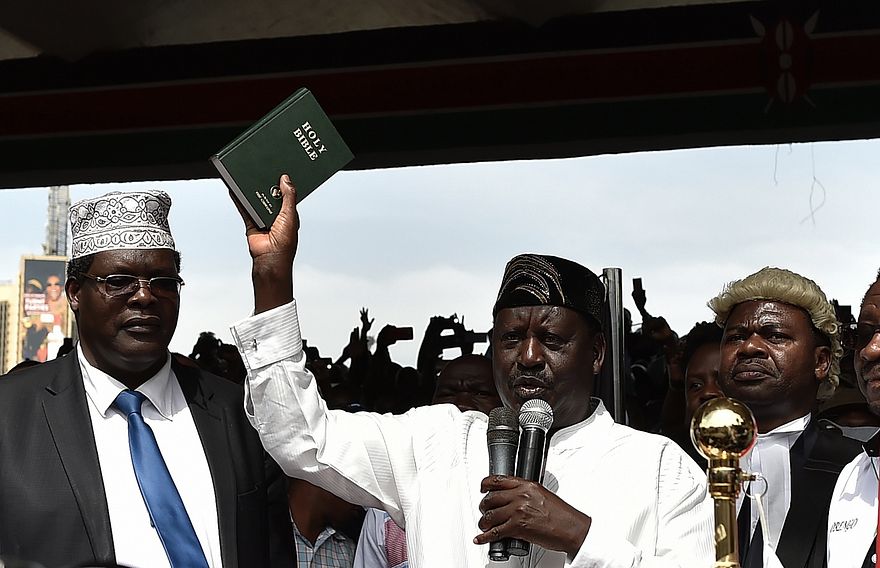 ނައިރޯބީ (ޖެނުއަރީ 30) - ކެންޔާގައި މިދިޔަ އަހަރު ބޭއްވި ރިޔާސީ އިންތިޚާބުގެ ދެ ވަނަ ބުރު ކޮއިކޮޓް ކުރި އިދިކޮޅު ލީޑަރު ރައިލާ އޮޑިންގާ "ރައްޔިތުންގެ ރައީސްގ" ގޮތުގައި މިއަދު ހުވާ ކުރައްވައިފި އެވެ.