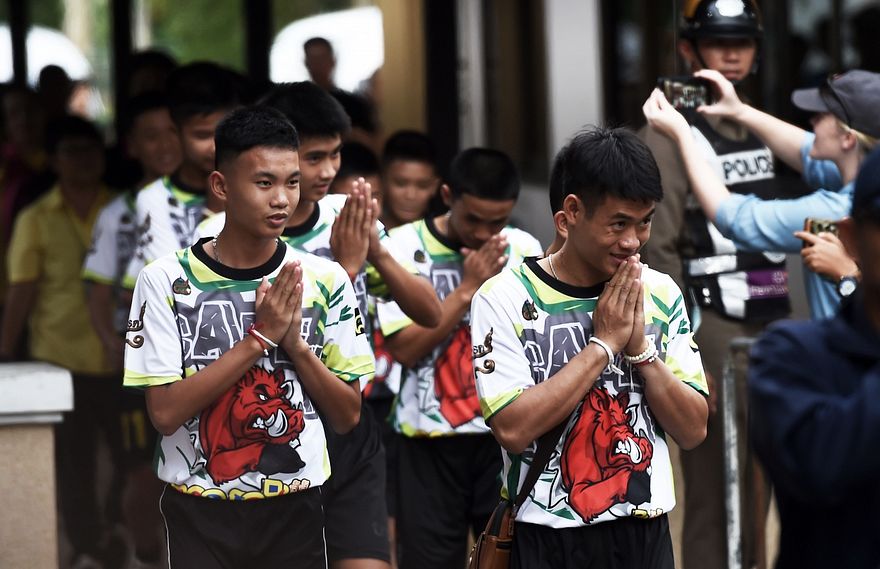 އުމުރުން 11-16 އަހަރުގެ 12 ކުދިންގެ ޓީމުގެ ބައިސްކަލްތަކާއި ފުޓުބޯޅަ ބޫޓު ހޮހަޅައިގެ ބޭރުގައި ބެހެއްޓުމަށް ފަހު އެތެރެއަށް ވަނެވެ. އެއް ކުއްޖަކު ހޮހަޅައިގެ ފެންގަނޑުގެ ތެރޭން ހިނގަން ފެށުމާ އެކު ދެން ތިބި ކުދިން ވެސް އެ ކުއްޖާގެ ފަހަތުން ފެންގަނޑު ތެރޭ ހިނގަން ފެށި އެވެ.