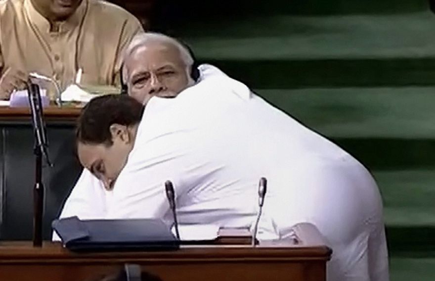 ނިއު ދިއްލީ (ޖުލައި 21) - ބޮޑު ވަޒީރު ނަރެންދުރަ މޯދީގެ ސަރުކާރުގެ އިތުބާރު ނެތްކަމަށް ޕާލަމެންޓުގައި އިއްޔެ ނެގި ވޯޓުގެ ކުރިން ހިނގައި ދިޔަ 12 ގަޑިއިރުގެ ވަރުގަދަ ބަހުސްގައި ކޮންގްރެސް ޕާޓީގެ ލީޑަރު ރާހުލް ގާނދީ ފެނުނީ ސަރުކާރަށް ވަރުގަދަ އަށް ބަހުގެ ހަމަލާ ދެއްވި މަންޒަރެވެ. ރާހުލްގެ ތަގްރީރު ނިންމާލެވީ އޭނާ ބީޖޭޕީ ދެކެ ރުޅި ނާންނަ ކަމަށް ވިދާޅުވަމުންނެވެ. ގަޑިއެއްހާ އިރުގެ ތަގްރީރަށް ފަހު ރާހުލް ދެން ވަޑައިގެންނެވީ ކުރީ ބެންޗުގައި އިންނެވި ބޮޑު ވަޒީރު ނަރެންދުރަ މޯދީގެ އަރިހަށެވެ. މޯދީއާ ސަލާމް ކުރެއްވުމަށް ފަހު ކުއްލި އަކަށް މޯދީގެ ގައިކޮޅުގައި ބައްދާލެއްވުމުން އެތައް ބަޔަކަށް ހައިރާންކަން ގެނުވި އެވެ.
