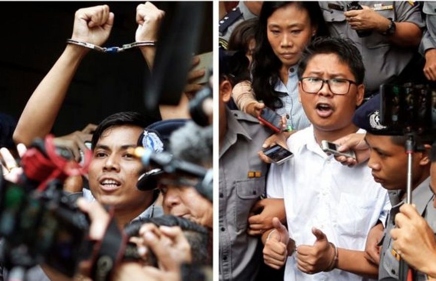 ވާ ލޯން އާއި ކިއޯ ސޮއެ އޫ ޑިސެމްބަރު 2017 ގައި ޖަލުގައި ބަންދުކުރީ ރަކީން ސްޓޭޓުގައި ރޮހިންޖާ މުސްލިމުންނާ ދެކޮޅަށް މިއަންމާ ސިފައިން ހިންގާ ޖަރީމާތައް ރިޕޯޓް ކުރުމުންނެވެ. އެ މީހުންގެ މައްޗަށް ދައުވާކޮށް ޖަލަށްލީ ސަރުކާރުގެ ސިއްރުތަކެއް ބޭޒާރު ކުރިކަމުގެ ކުށުގަ އެވެ.