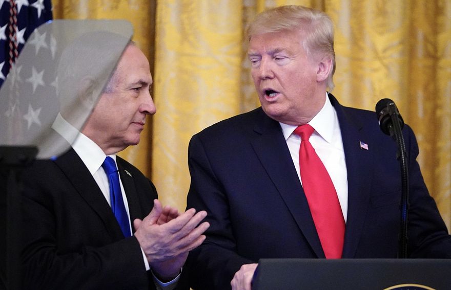 ނަތަންޔާހޫއާ އެކު ސުލްހައިގެ ޕްލޭން ޓްރަމްޕް އިއުލާން ކުރެއްވި ދެ ބޭފުޅުންގެ ވެސް ސިޔާސީ ކުރިމަގު ވަނީ މައްސަލަތަކެއްގެ ތެރޭގަ އެވެ. ޓްރަމްޕް އިމްޕީޗް ކުރުމުގެ ޝަރީއަތް ސެނެޓުގައި ކުރިއަށްދާއިރު ނަތަންޔާހޫގެ ކޮރަޕްޝަނުގެ މައްސަލަ ދަނީ ކުރިއަށެވެ.