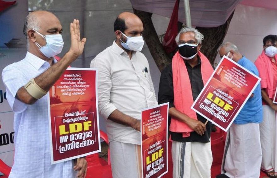 ކެރަލާ ސްޓޭޓްގެ ވެރިކަން ކުރާ ޕާޓީ ލެފްޓް ޑިމޮކްރެޓިކް ފްރޮންޓް (އެލްޑީއެފުން) އިންތިޒާމު ކޮށްގެން ބޭއްވި މު މުޒާހަރާ ކުރިއަށް ގެންދިޔައީ، އެ ސިޓީގައި ހުންނަ އިންޑިއާގެ މައި ސަރުކާރުގެ އިދާރާތައް ކުރިމަތީގަ އެވެ. މި މުޒާހަރާގައި އެލްޑީއެފްއާ އެކު ކޯލިޝަން ހަދައިފައި އޮންނަ އެހެން ޕާޓީތަކުން ވެސް ބައިވެރިވި އެވެ. އެ މީހުން ވަނީ ކެރެލާގެ ސްޓޭޓްގެ މަޖިލީހަށް ވެސް، ލަކްޝަދީބްގެ މި މައްސަލަ ވައްދައިފަ އެވެ.