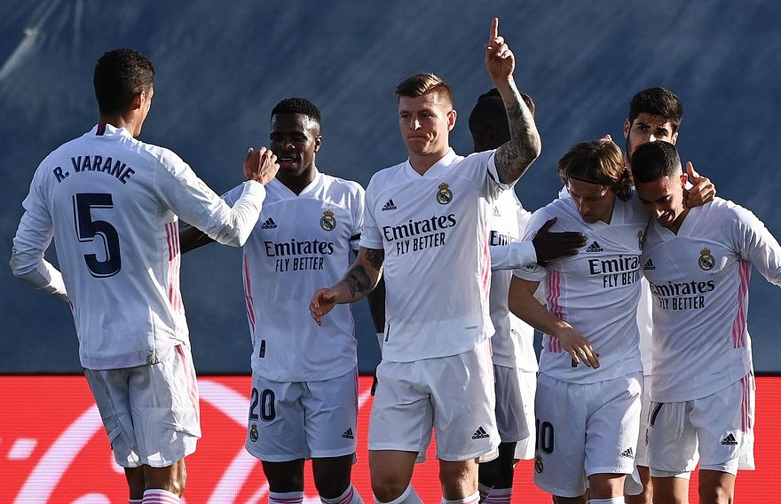 މެޗު ފަށައިގެން 12 ވަނަ މިނިޓްގައި ރެއާލަށް ލީޑުނަގައިދިނީ ފްރާންސްގެ ފޯވާޑް ކަރިމް ބެންޒެމާ އެވެ. ޓޯނީ ކްރޫސް ދިން ބޯޅައަކުން ބެންޒެމާ މި ގޯލު ޖެހީ އޭރިއާބޭރުން ފޮނުވާލި ޝޮޓަކުންނެވެ. މިއީ މި ފަހަރު ލީގުގައި ބެންޒެމާ ޖެހި 12 ވަނަ ގޯލެވެ. ފުރަތަމަ ހާފް ނިމުމުގެ ކުރިން ރެއާލްގެ ދެ ވަނަ ގޯލު ޖެހީ ކްރޫސް އެވެ. މިއީ ލޫކަސް ވަޒްކޭޒް ދިން ބޯޅައަކުން ކްރޫސް ކާމިޔާބުކުރި ގޯލެކެވެ.