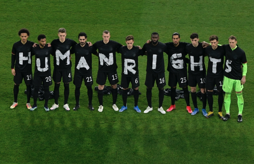 އެ ގޮތުން މިހާތަނަށް ނޯވޭ އާއި ޖަރުމަނު ގައުމީ ޓީމުން ވަނީ ވޯލްޑް ކަޕް ކޮލިފައިން މެޗުތަކަށް ނުކުތުމުގެ ކުރިން ޓީޝާޓްތަކެއްގައި ހިއުމަން ރައިޓްސްގެ މެސެޖްތަކެއް ޖަހައިގެން ޝުއޫރުފާޅުކޮށްފަ އެވެ. ރިޕޯޓްތައް ބުނާގޮތުން ކުރިއަށް ހުރި މެޗުތަކުގައި ޔޫރަޕްގެ އިތުރު ގައުމުތަކުން މި ކެމްޕެއިންގައި ބައިވެރިވާނެ އެވެ.